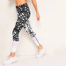 Black and White Sporty Polyester Geometric Fabric is very stretchy Leggings, size features are:Length: Crop,