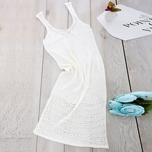 White Boho Sleeveless Acrylic Plain Tank Fabric has some stretch Summer Dresses, size features are:Sleeve Length : Sleeveless,