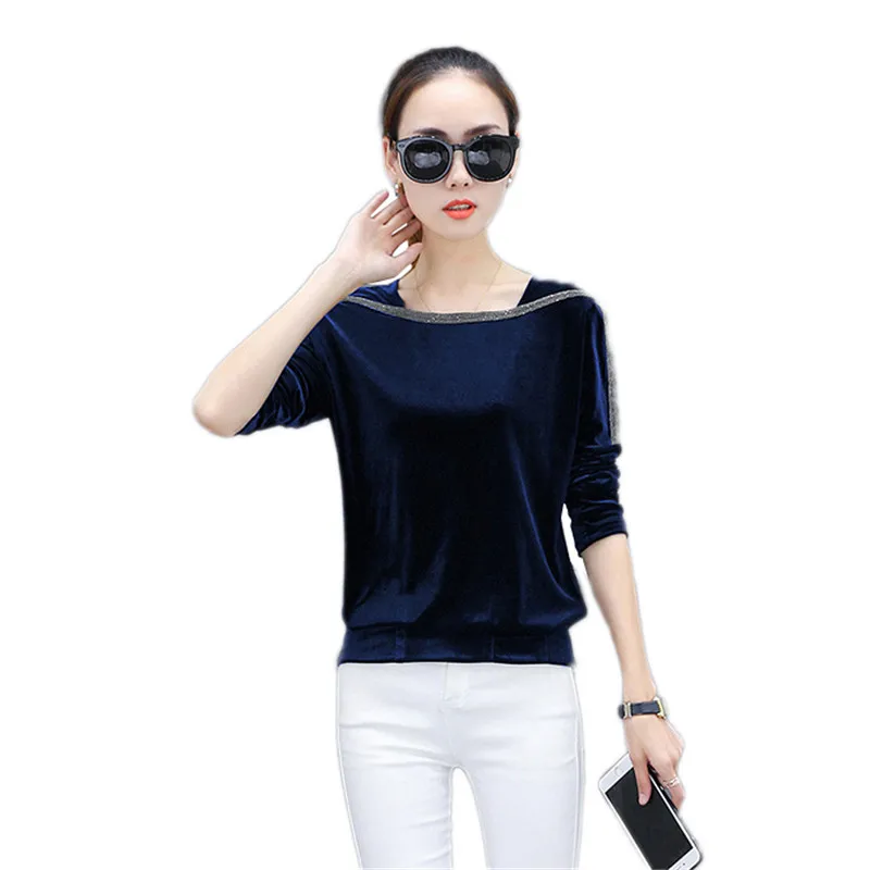 Bottoming Shirt Women Long-Sleeved t-Shirt Autumn Winter 2019 Spring New Korean Wild Loose Short Gold Velvet Tops Female Vs525