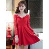 - Description:Lace Panel Off The Shoulder Vintage Flare Dress