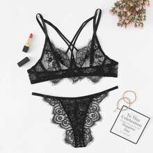 - Criss Cross Eyelash Lace Lingerie Set