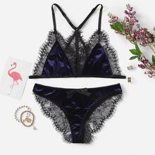 - Contrast Lace Velvet Lingerie Set