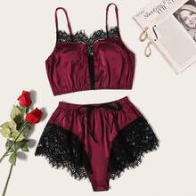 - Lace Trim Satin Lingerie Set
