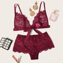 - Eyelash Floral Lace Tie Side Lingerie Set