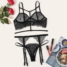 - Eyelash Lace Harness Garter Lingerie Set