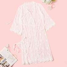 - Floral Lace Sheer Lingerie Set With Robe